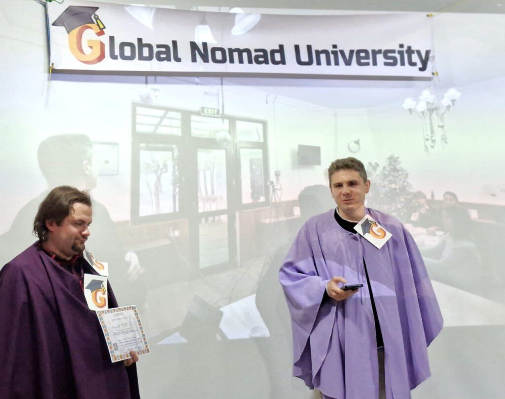 Nomad Graduation 🎓 ceremony 🎑—is a Big Event, the culmination of all the semester—of five weeks of the intence studies, preparation of the Final Course Work and a Public Defence—in fron of the Commission, that now includes at least one Independent Member, coming outside of the course teaching 😺—for the more objective, professional outlook 😜 of the presented course research 😁.